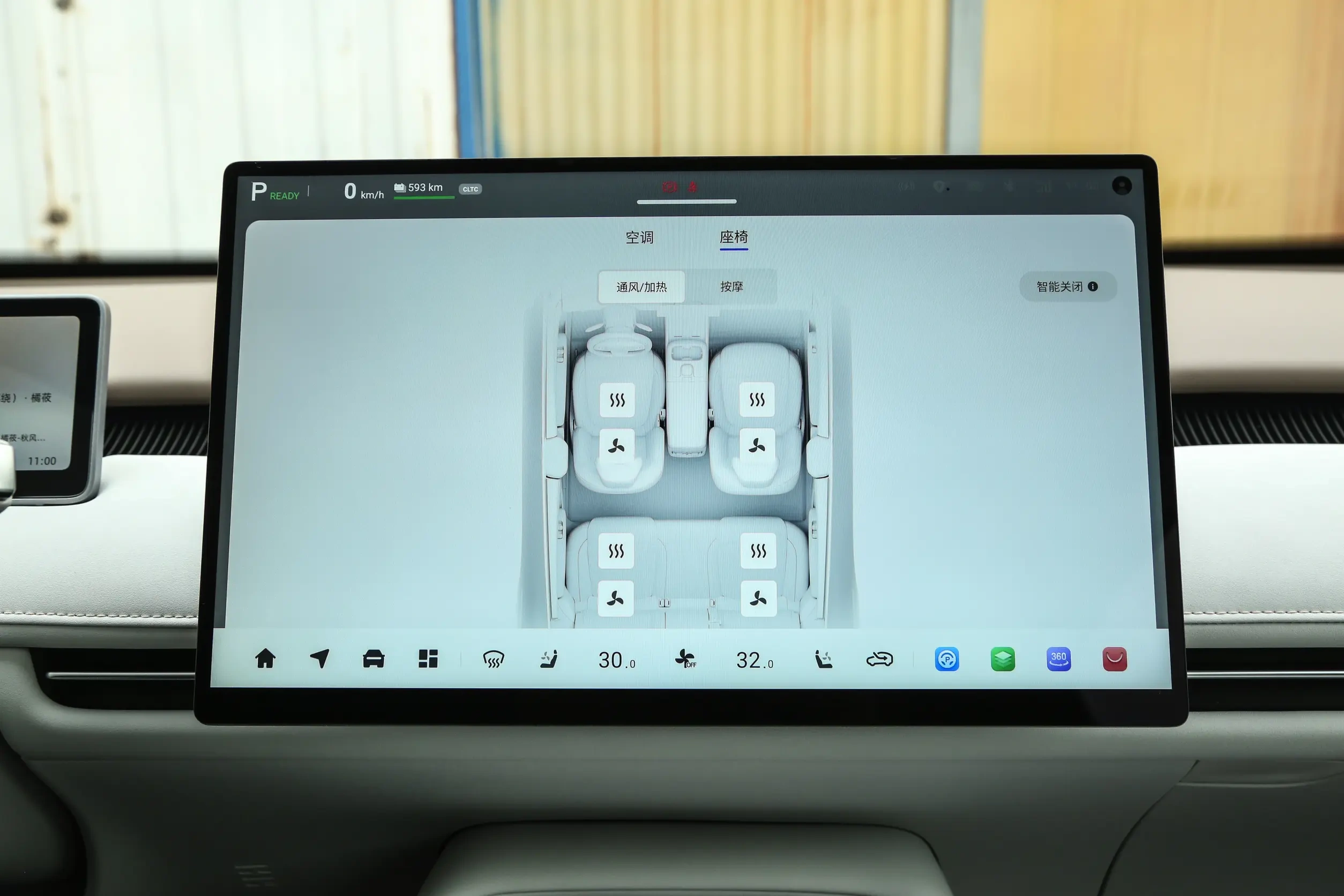 同时,小鹏M03在主驾驶位置还有按摩功能,冬天出门方向盘也是带加热的;长途出行时,驾驶人也有4向腰撑调节,多方面的静态舒适都照顾到了。