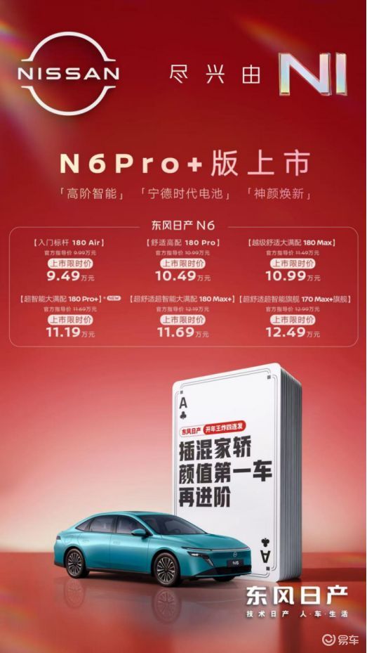 N6 180 PRO+版,限时价11.19万元,搭载宁德时代电池和Momenta高阶智驾,能够轻松应对高速、泊车、城市拥堵等复杂场景。同时,新车还提供了智能冷暖压缩机冰箱、甄选运动包个性化选装包等。目的也很明确,用性价比争取那些还在观望新能源的消费者。