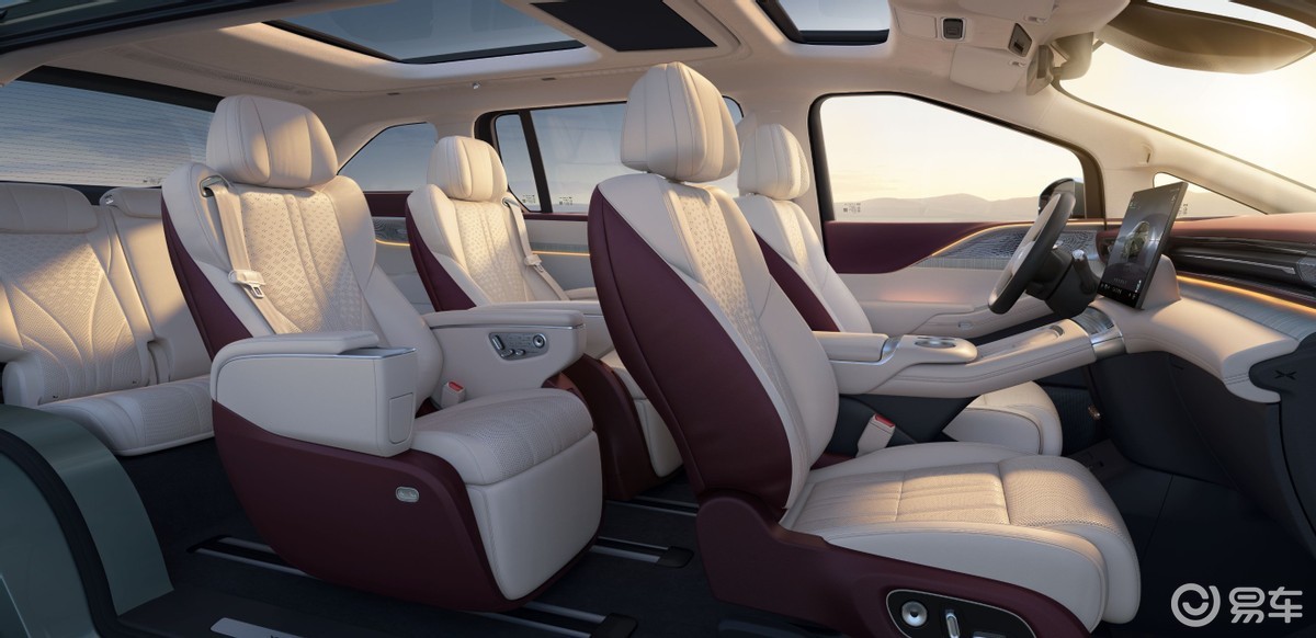 内饰部分,小鹏X9纯电版做到全系满配,三排电动三折叠座椅、Nappa真皮包裹的零重力座椅、第三排180度躺平功能,搭配27颗HiFi级扬声器,豪华感与舒适性拉满,适配商务和家庭使用场景。太极AI底盘配备智能双腔空气悬架与6D防晕车算法,带来百万级驾驶质感;全车标配9安全气囊,新增前排远端气囊与二排坐垫气囊,搭配全场景极限爆胎稳行系统等主动安全配置,提升乘坐安全性。