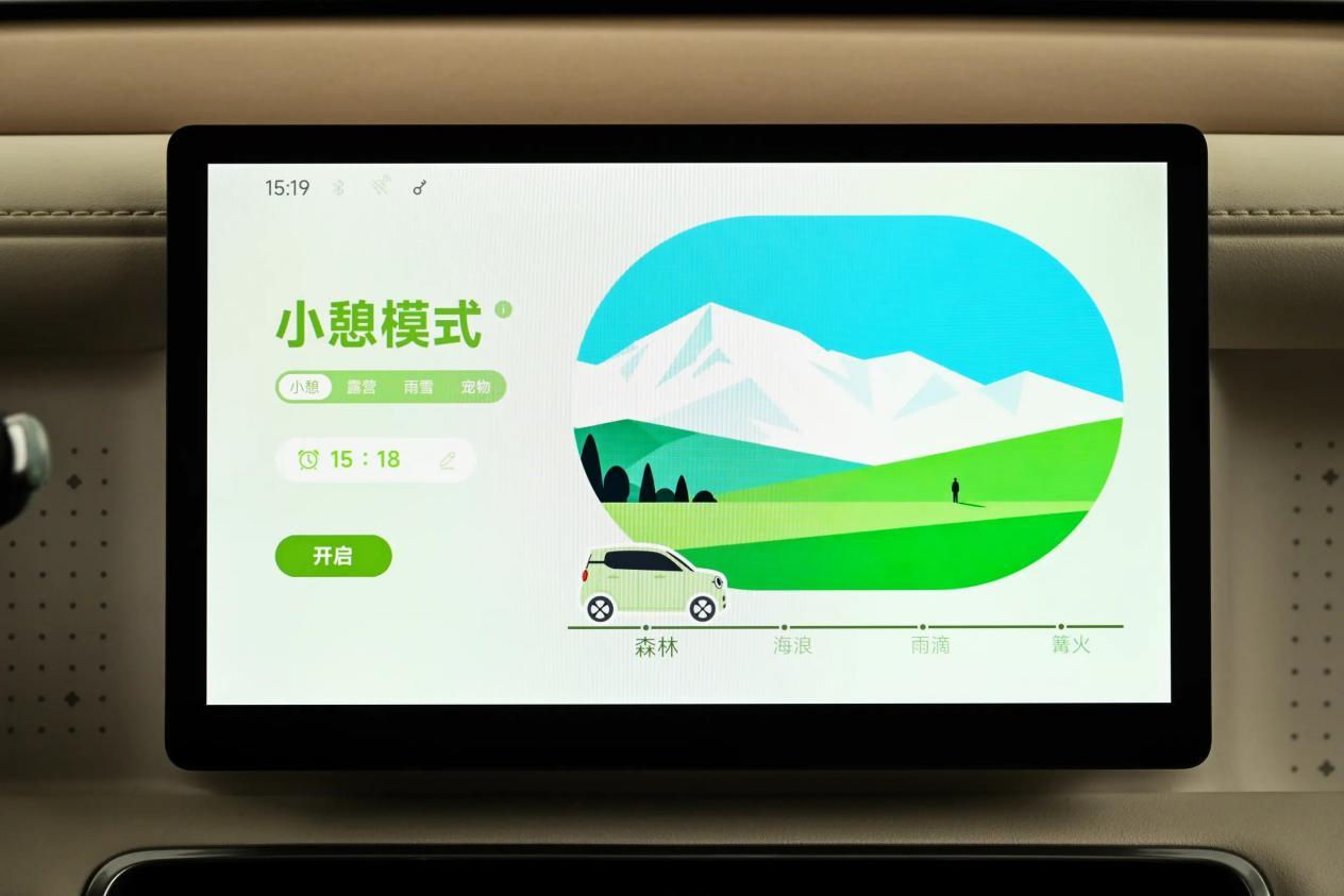 值得一提的是,第五代宏光MINIEV配备的智能座舱系统,还针对不同用车场景,优化了小憩模式、露营模式、雨雪模式与宠物模式,无论工作日午休还是周末带毛孩子“撒野”,均有专属场景响应,体验加倍。