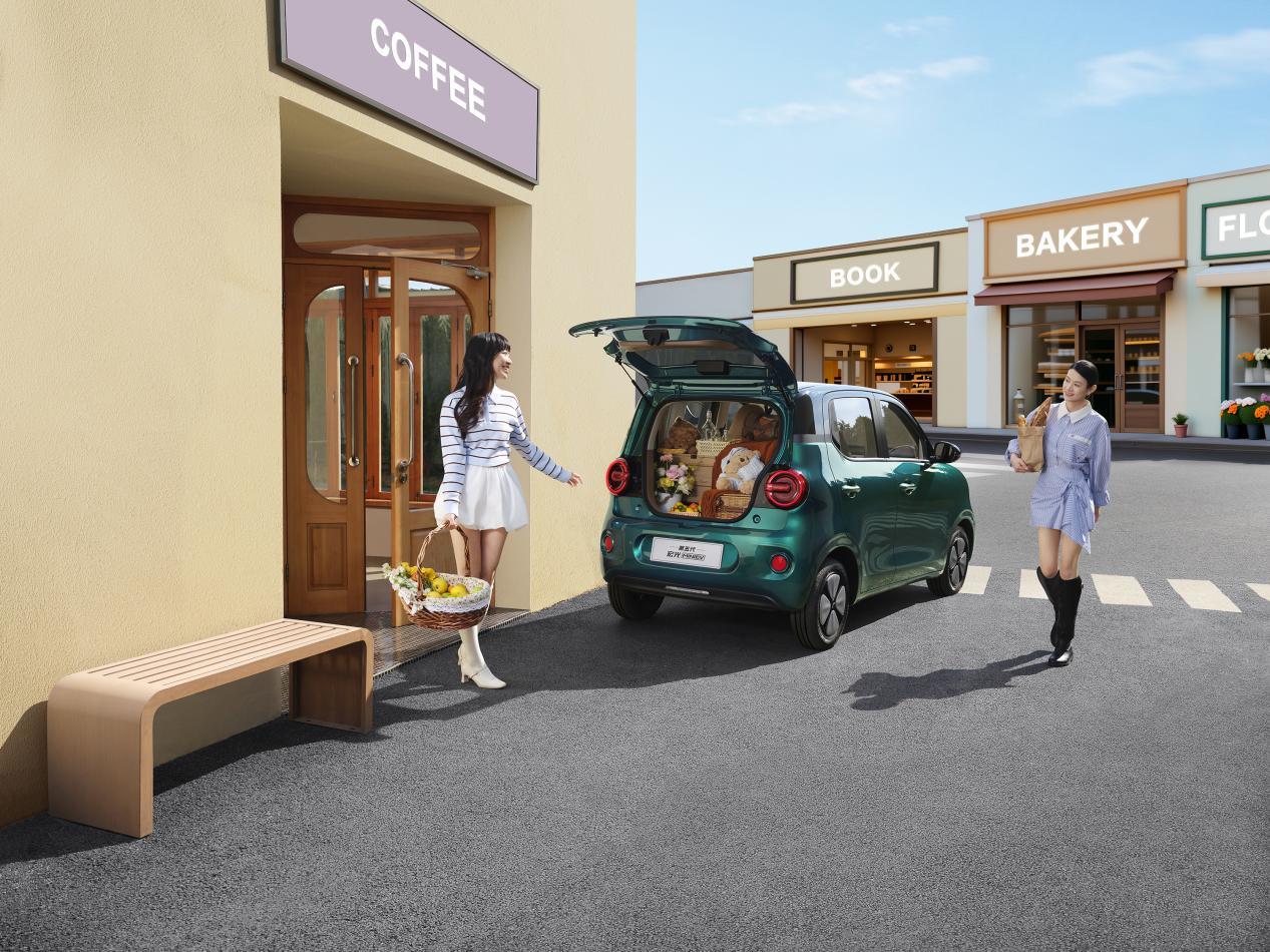 装载方面,第五代宏光MINIEV将最低尾门槛设计到了755mm,能更方便儿童推车、露营装备等物品取放。同时,新车后排座椅靠背支持5/5比例放倒,后排座椅靠背全部放倒后,可将后备厢容积拓展至838L,大尺寸行李箱、折叠自行车、露营帐篷/天幕等,均可从容收纳。